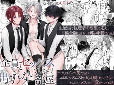 全員とセックスしないと出られない部屋。男三人が代わる代わるメスイキさせられちゃう! 【OL】
